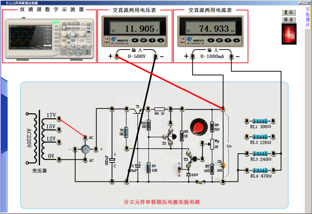 配有相關實驗電路,能夠實現實驗指導書預覽、實驗連線、參數調節(jié)、測試、排查、分析實驗原理,能夠盡可能1:1的還原實驗過程,實驗中可以添加文本標識;